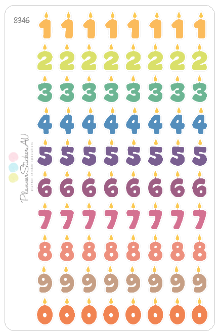 Each sheet contains 8 x each number 0-9, stickers measure 1.4cm high.